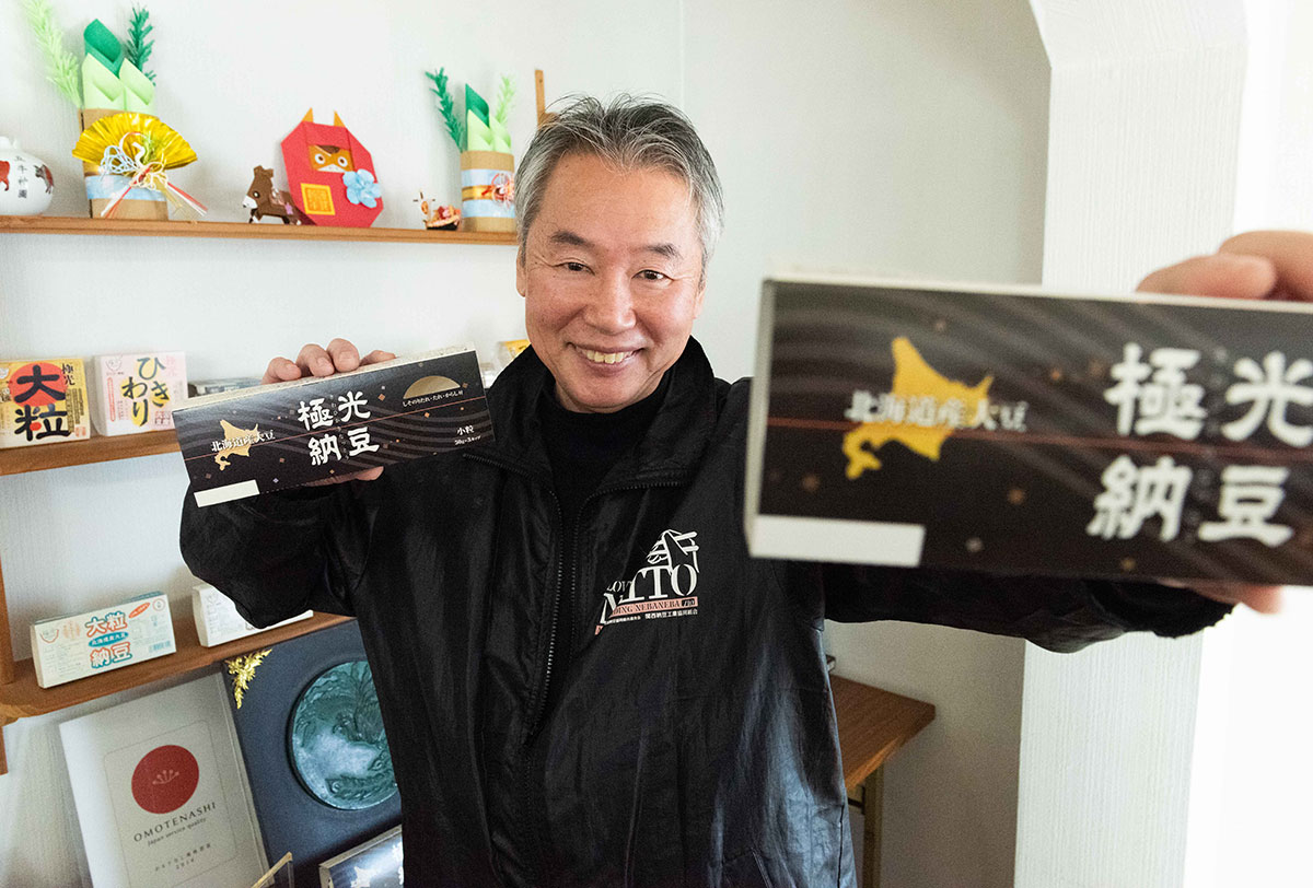 関西納豆工業協同組合の会合に参加し、大阪の人が苦手とする「臭い」や「ねばねば感」が出ない作り方をどん欲に学んだ。その成果が実を結び、2年後の全国納豆鑑評会で特別賞を初受賞。看板商品の「極光(きわひかり)」は通常の納豆と比べ3倍ほどの価格だが、生協や高級スーパーを中心に売り場を着実に増やしている。鑑評会での受賞はこれまでに7回を数える。めざすのは、日本一の証ともいえる農林水産大臣賞。パソコンのトップ画面には、何度も受賞している常連メーカーの商品画像を貼って「常にゴールのイメージを思い描くようにしている」という。そのたゆまぬ姿勢は「大阪の人に納豆をおいしいと思わせて見返したい」という強い思いだ。