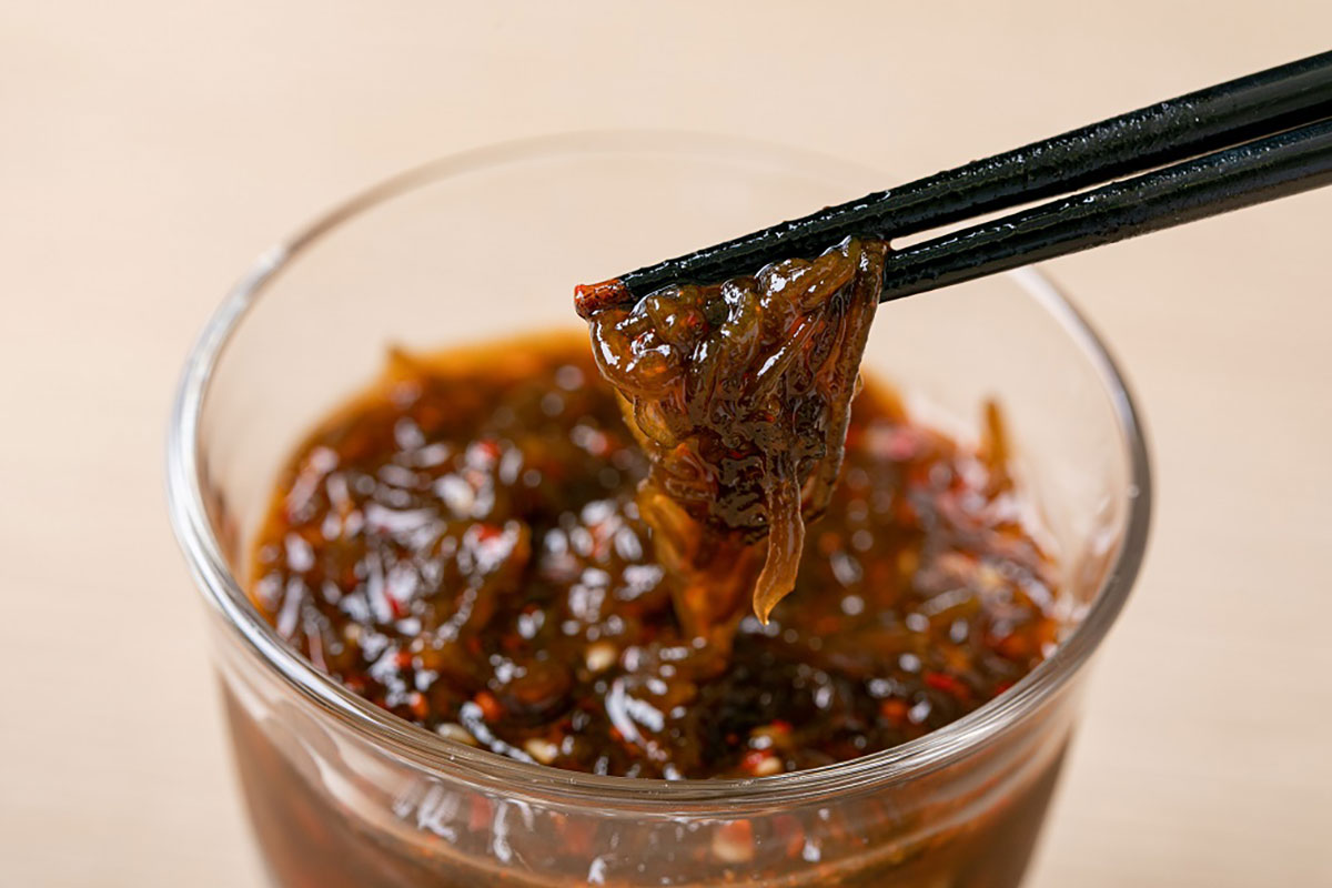 数多くの商品開発を手がけてきましたが、消えていった商品も数知れず。その一つが果物の柿を使ったキムチでした。商品自体はおいしくできたのですが、なぜ売れないかを考える中で、“用途が明確でない商品は売れない”という結論にたどり着きました。「柿のキムチって、いつ食べていいかわからないでしょ?」と(笑)。現在は、ごはんのお供、お酒のつまみ、箸休めの3つの用途を明確にした商品開発方針を貫いています。