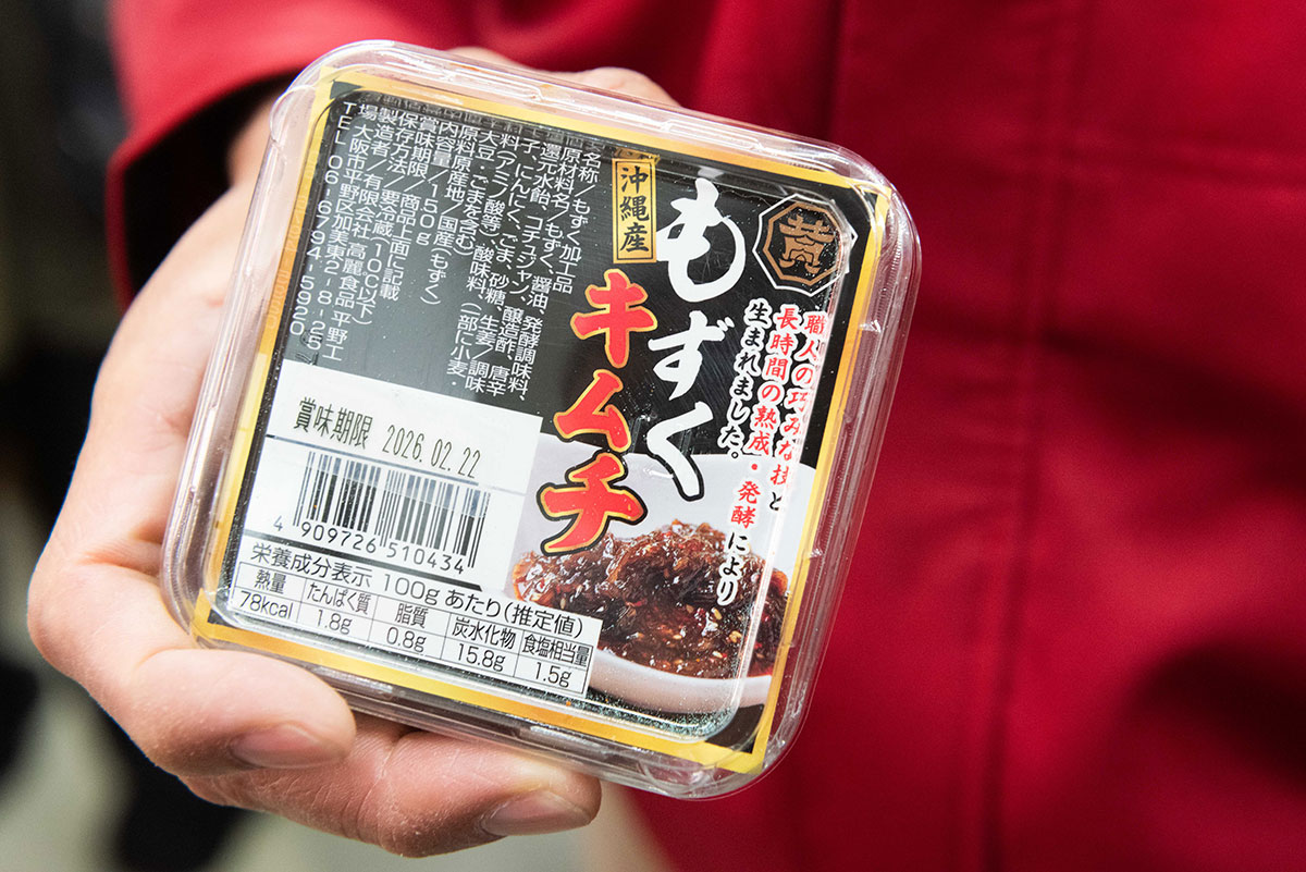 実は以前にももずくキムチを商品化したことがあったが、500個も売れず、最速で廃番となった苦い思い出がある。「あの時は、酢の物として打ち出して失敗してしまった。今回は、コンセプトを明確にし、子どもの頃にごはんのお供で食べた韓国のところてんの味付けを参考に改良しました」。ある食品専門店がその商品に目をつけ、150g448円で店頭に並べたところ、月販7万個という驚異的な売上げを記録した。「白菜キムチはスーパーで198円というのが相場ですが、非日常的な買い物の場として訪れる食品専門店では高価格でも売れることを改めて実感しました」。もちろん、その価格に見合う商品の開発を10数年かけて重ねてきた蓄積があればこそだ。