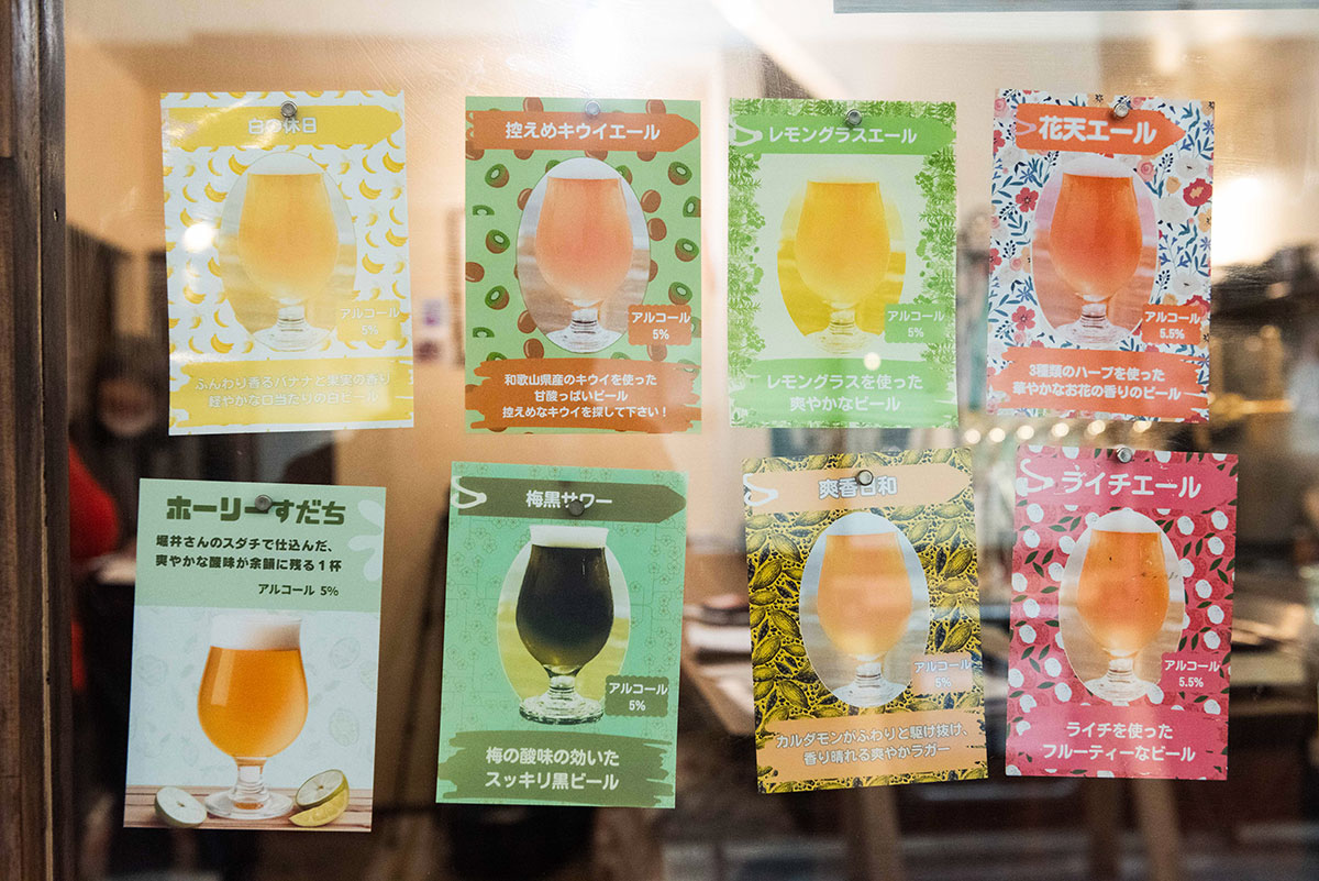 一時期はシャッター通りだったが、現在は個性的なお店が並ぶ鶴見区の放出栄町商店街に、クラフトビール醸造所を併設したビアバーがある。「クラフトビールは敷居が高いイメージがありますが、気軽に入って交流してもらえるスタンディングスタイルにしました。副原料のハーブや果実、スパイスなどで変わる味や香りを楽しんでほしい」と大迫氏。